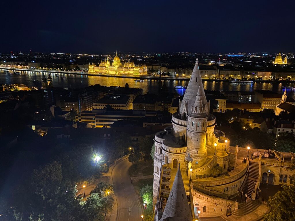 Pro večerní posezení u něčeho dobrého doporučuji White Raven Skybar & Lounge. Kde u výborného jídla a pití můžete pozorovat celou Budapešť na dlani. My si navíc vybraly čas, kdy se začínalo stmívat a celé město pomalu rozsvěcovat a bylo to krásná podívaná.