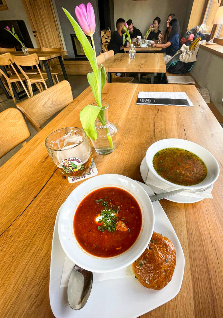 Pokud Vám vyhládne a Adršpašsko-teplické skály budete mít projité, můžete se zastavit na něco dobrého v restauraci Qadr rest & bar, najdete ji kousek od vstupu do areálu. Zaujala nás už z venku. Interiér byl však snad ještě hezčí. Dali jsme si polévku na zahřátí, ale najdete zde i hlavní chody nebo zákusky, které vypadaly opravdu lákavě. V prostoru restaurace je umístěn i klavír, na kterém jeden z hostů chvíli příjemně hrál.