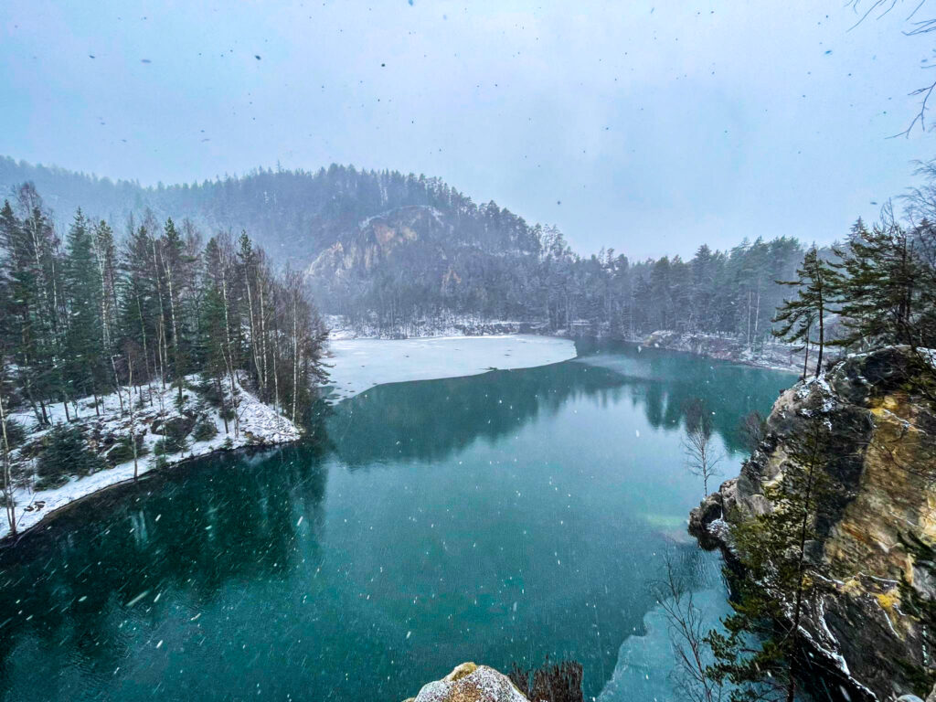 Připadá Vám tato fotka jako ze zimní dovolené uprostřed rakouského jezera? Kdepak, tuhle krásu máme u nás v Česku! Jde o Adršpašsko-teplické skály, které se nacházejí již skoro na pomezí hranice s Polskem.