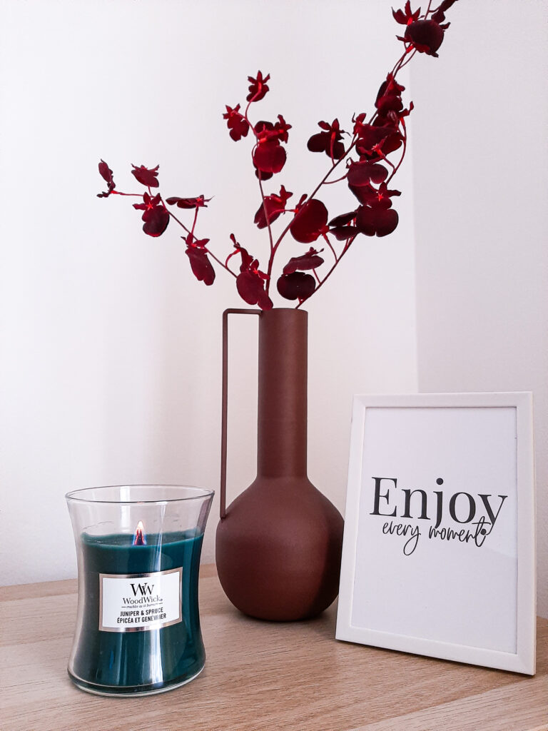 Nejraději mám svíčky značky Wood Wick. Mají dřevěný knot, který při hoření „praská“ a připomíná tak jemné zvuky praskajícího krbu. Svíčky mají navíc intenzivní vůni a krásně provoní již během chvilky celou domácnost. Značka se specializuje především na dřevité a kořeněné vůně. Mou oblíbenou vůní je Juniper & Spruce, která voní jako jalovcové bobule a modrý smrk. Proto se také hodí na chladné zimní večery.
